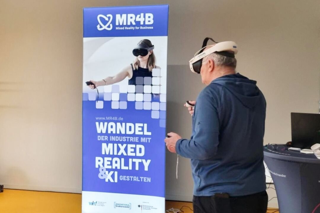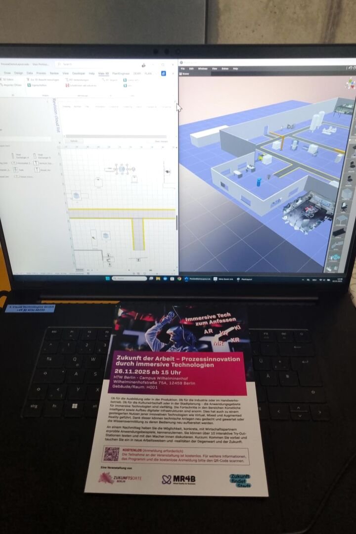 Wir präsentierten unsere Demonstratoren aus den Projekten MR4SafeOperations und KEPLER. Die Gäste konnten direkt vor Ort eine virtuelle Industrieumgebung erleben und sich über die Einsatzmöglichkeiten von Mixed Reality informieren.