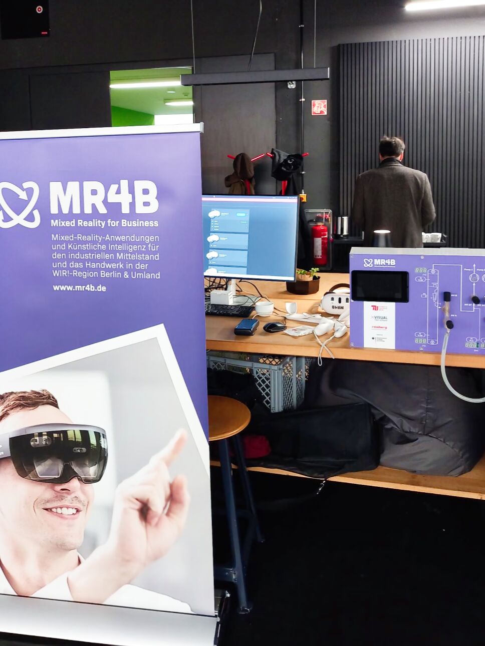 An mehr als zehn Stationen konnten Besucherinnen und Besucher die unterschiedlichen Lösungen selbst ausprobieren und waren sehr interessiert und beeindruckt von MR4SO und KEPLER und dem DIY MR Autorentool. Bei diesen MR4B-Projekten geht es im Wesentlichen nun darum, die Prototypen zur Marktfähigkeit weiterzuentwickeln. Das dort gegebene Feedback bestätigte, dass die Prototypen praxisnah ausgerichtet sind und Potenzial für den späteren Einsatz in Unternehmen besitzen.